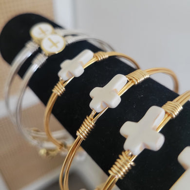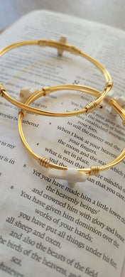 "Erika" Bracelet - White & Gold Cross